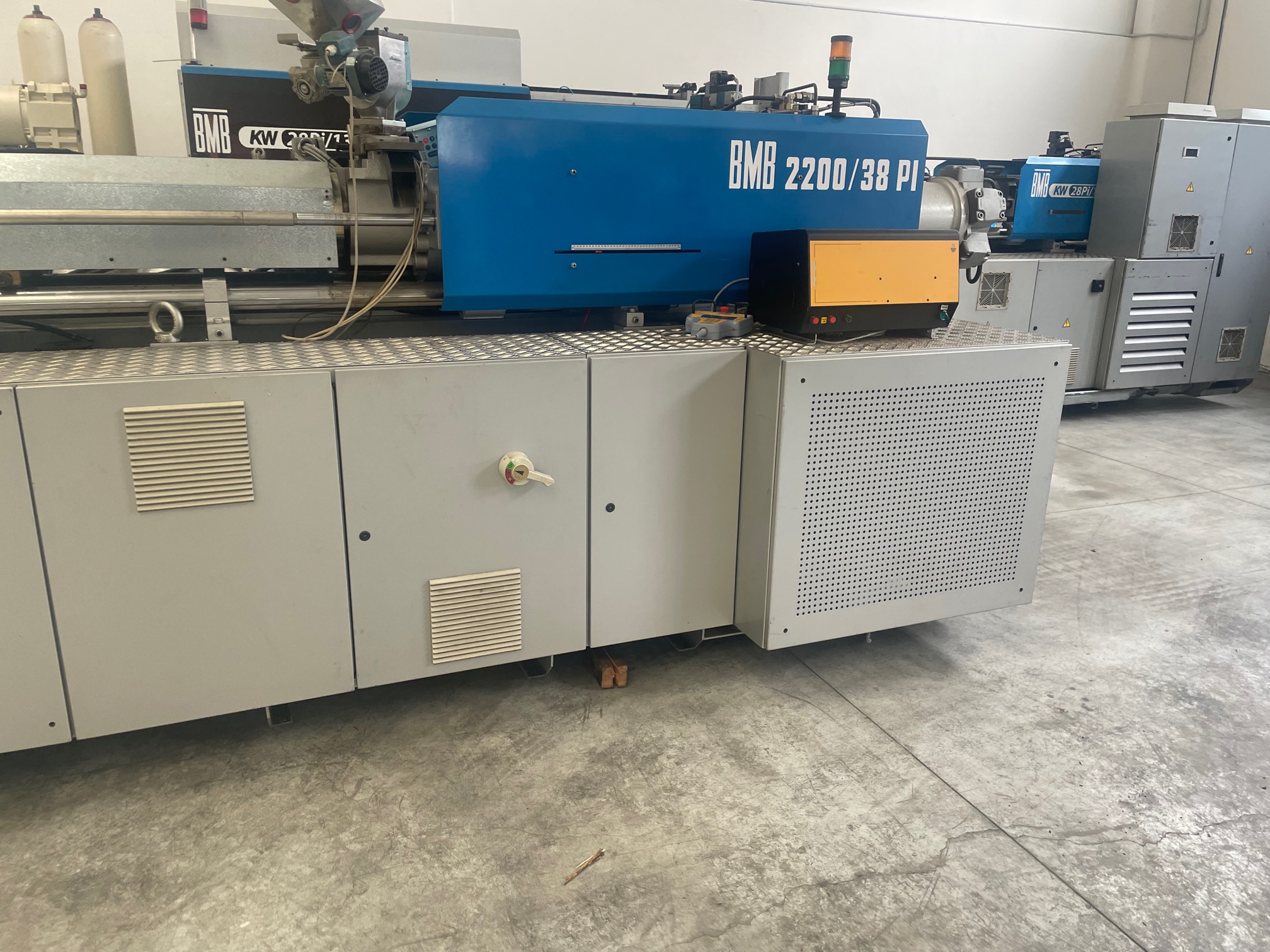 Pressa ad iniezione idraulica usata marca BMB mod. KW38PI/2200, anno di costruzione 2003, dotata di ugello idraulico, controllo temperatura camera calda stampi, soffi aria, radiali olio, comando ugelli stampo ad aria, interfaccia robot e antivibranti.